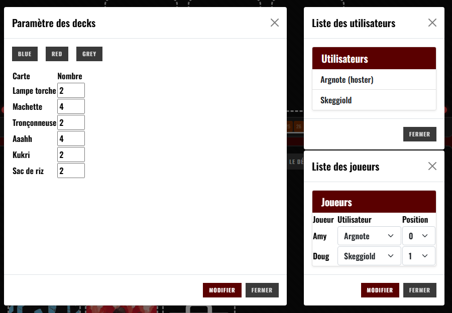 - Configuration de la partie